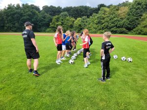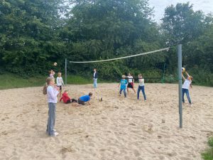 Vom 4. bis zum 8. August 2025 fand die 5. Sommerschule des Bernhard-Riemann-Gymnasiums (BRG) statt. Dieses Mal haben sich über 80 Kinder für das Sportangebot und die Deutsch- und Mathematikunterrichtung angemeldet. Die verfügbaren Plätze waren schnell ausgebucht. Es musste sogar eine Nachrückerliste erstellt werden. Dies freute den Schulleiter Herr Hämke und die für die Organisation verantwortliche Koordinatorin Frau Vahl sehr. Die Schüler und Schülerinnen wurden auf sechs Gruppen verteilt, um das Sportangebot des TSV Adendorf und der Sportvereinigung Scharnebeck zu nutzen. Dieses Mal wurde Karina Hagemann, die wie jedes Jahr den Einsatz der Sportgruppen plante, besonders gefordert. Denn die Sporthalle des BRG stand auf Grund von Bauarbeiten nicht zur Verfügung. Das Angebot bestand in diesem Jahr aus den Sportarten Beachvolleyball, Fußball, Handball (Halle und Feld), Ju-Jutsu, Leichtathletik, Tischtennis und Turnen.  Bevor es zum Sport oder in die Unterrichtung ging, hatten die Kinder ein gemeinsames gesundes Frühstück. Gemüse, Obst und Brötchen wurden wieder von EDKA Bergmann gespendet und von den Helfern und Helferinnen des TSV Adendorf vorbereitet.
